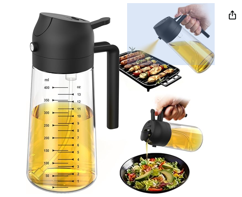 - TrendPlain 16oz/470ml Glass Olive Oil Sprayer for Cooking – 2 in 1 Olive Oil Dispenser Bottle for Kitchen Gadgets and Air Fryer Accessories, Salad, BBQ - Black